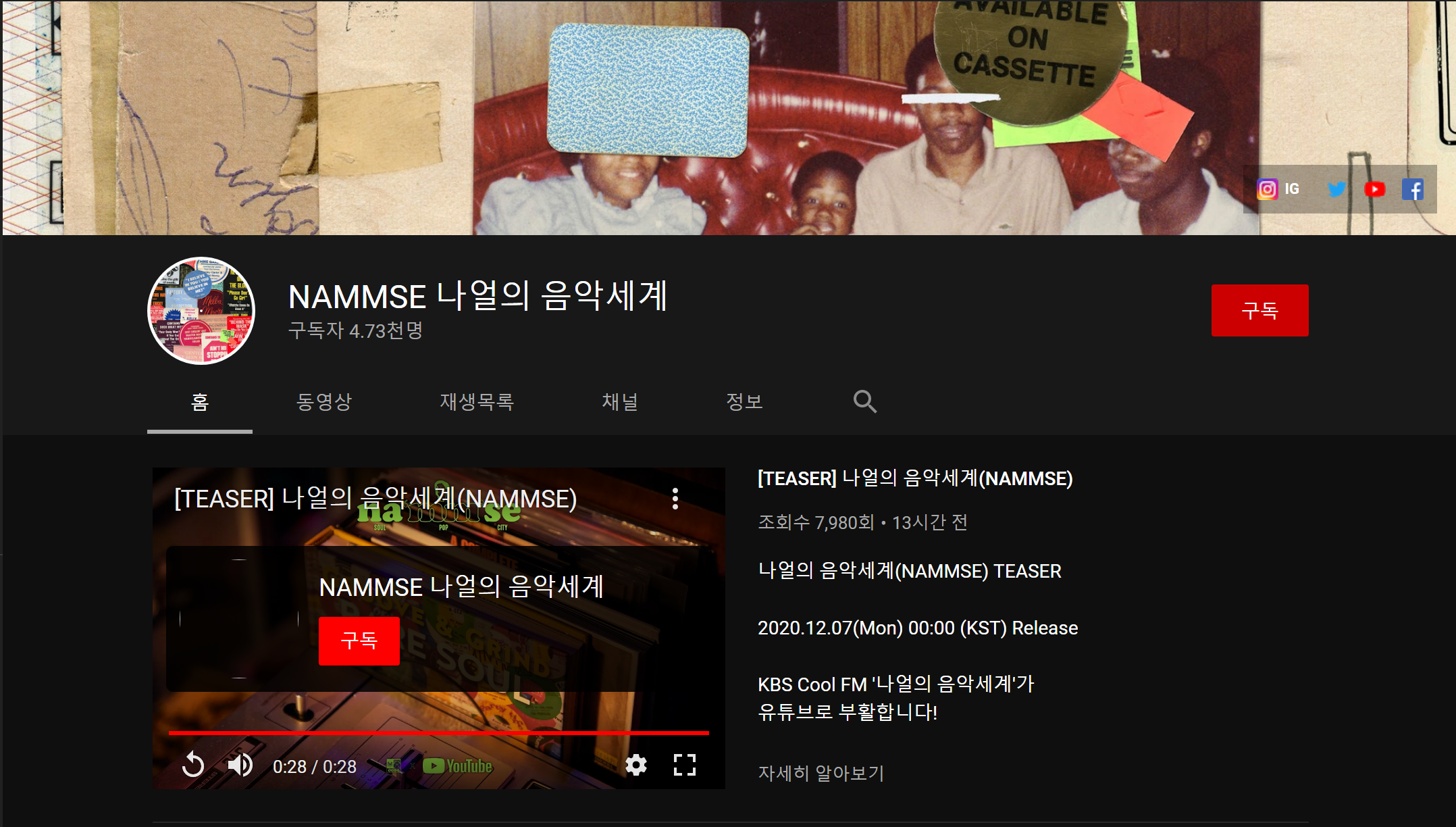 브라운아이드소울 가수 나얼이 유튜브 채널을 오픈했다는 소식입니다.