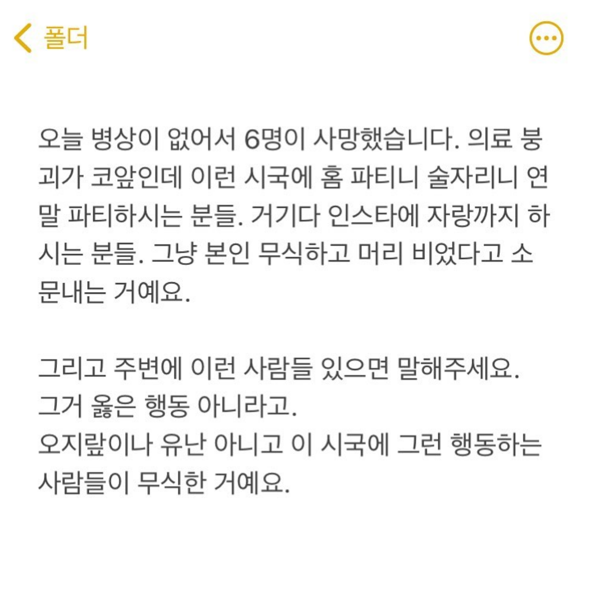 코로나19가 점점 더 확산되고 있는 현 시점에 높은 시민의식이 필요한데요. 이런 시기에 적절한 배민정 일침이 아닌가 생각되네요.