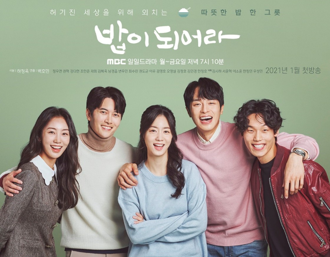 MBC 일일드라마 밥이되어라는 120부작으로 기획된 장편 일일드라마입니다. 평일 매일 방송한다고 했을 때 24주 6달 동안 방송될 드라마 입니다. 2021년 1월 11일부터 방영해서 매주 월~금 저녁 7시 10분에 MBC에서 방송하고 있습니다.