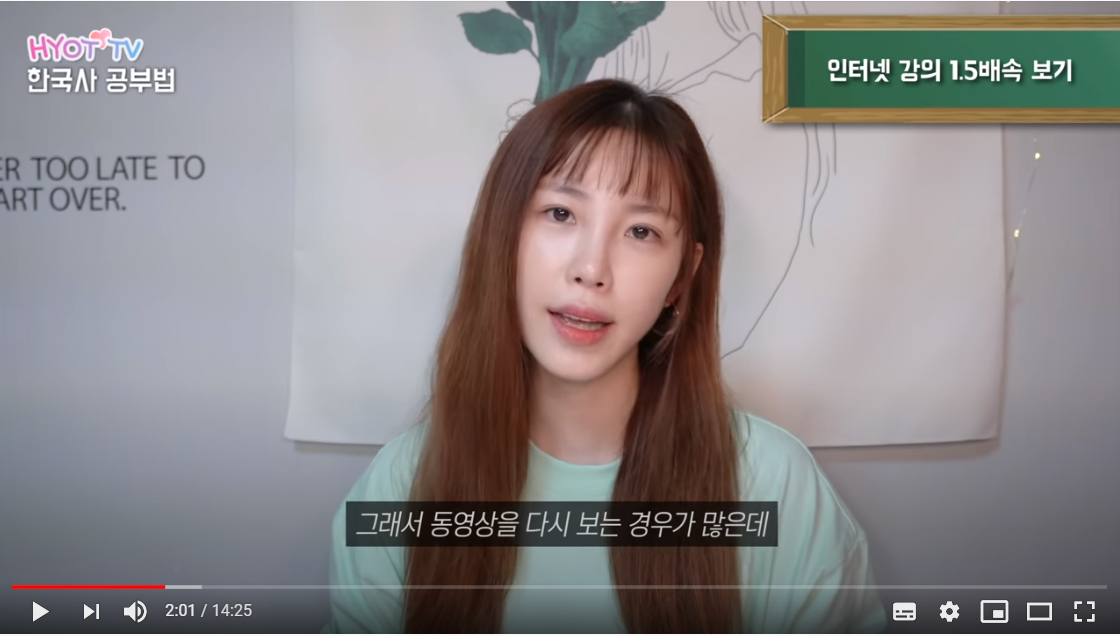 인터넷 동영상 강의를 빨리보는 이유에 대해서는 전효성은 "전에 봤던 내용이 기억이 나지 않아 다시 복습해야하는 상황에서는 빠른 속도로 재생하는 것이 효율적이다."라고 말했습니다.