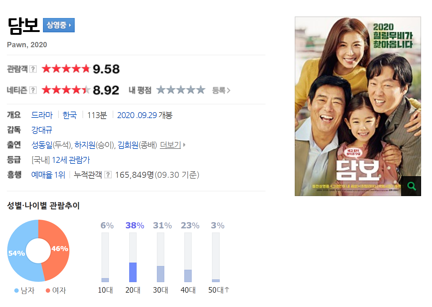 영화 담보는 떼인 돈을 받으러 갔다가 9살 승이(박소이)를 담보로 맡게 되면서 시작되는 휴먼 코미디 영화인데요. 출연진은 성동일, 하지원, 김희원이 출연합니다. 얼마 전에 성동일과 김희원이 라디오스타에 출연해서 홍보도 했었는데요. 영화 '담보'는 9월 29일에 개봉해서 현재 네이버 기준 관람객 평점 9.58점, 네티즌 평점 8.92점을 기록하고 있습니다.
