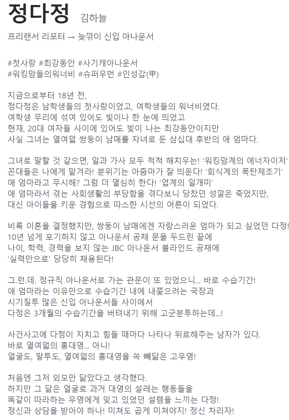 방송시간 : jtbc 월, 화 오후 9:30