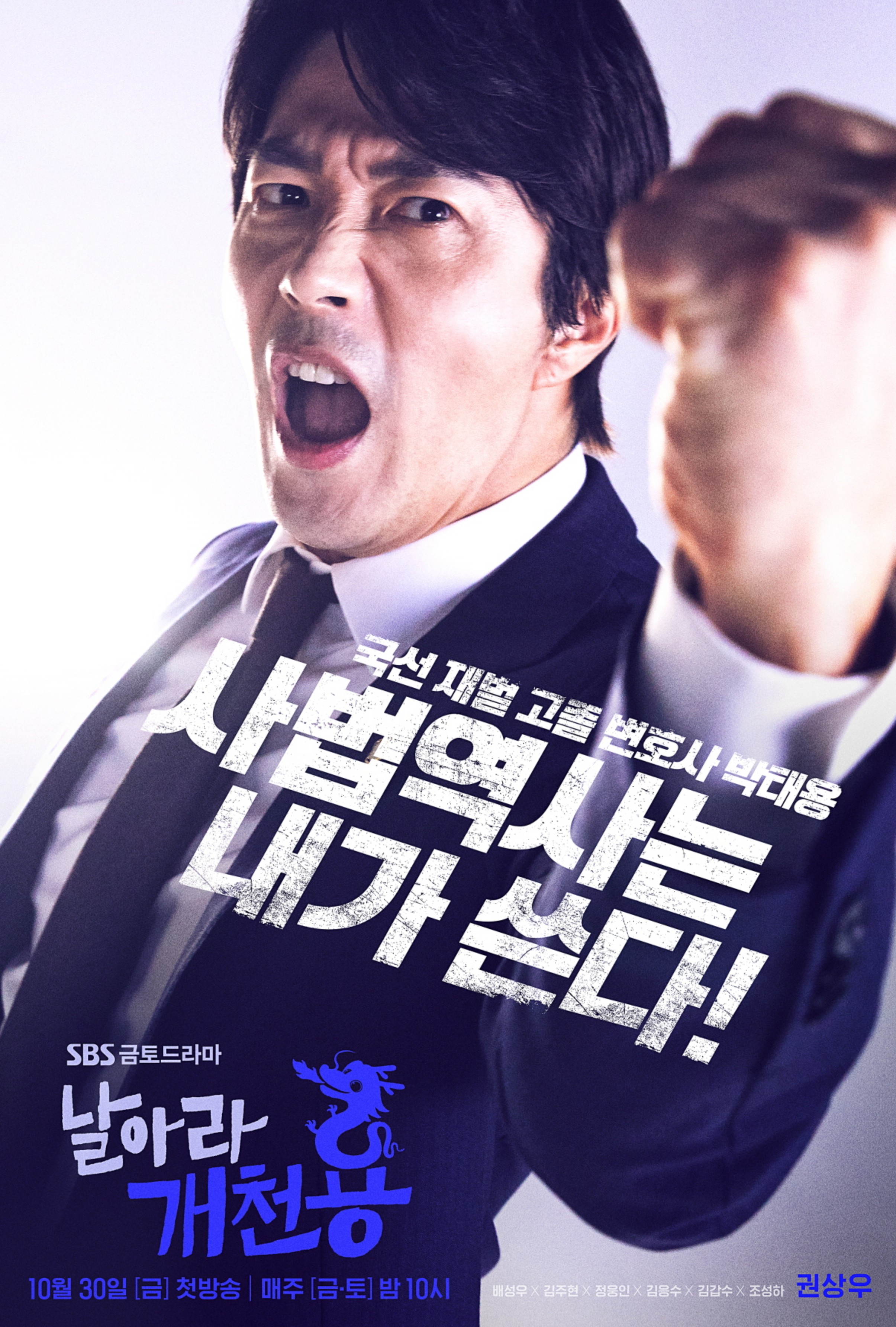 날아라 개천용은 10월 30일 첫방송해서 매주 금,토 밤 10시에 방영하는 주말 드라마인데요. 권상우와 배성우가 메인 캐릭터를 연기하면서 화재가 되고 있는 드라마입니다. 날아라 개천용은 다른 주말드라마처럼 16부작 입니다.