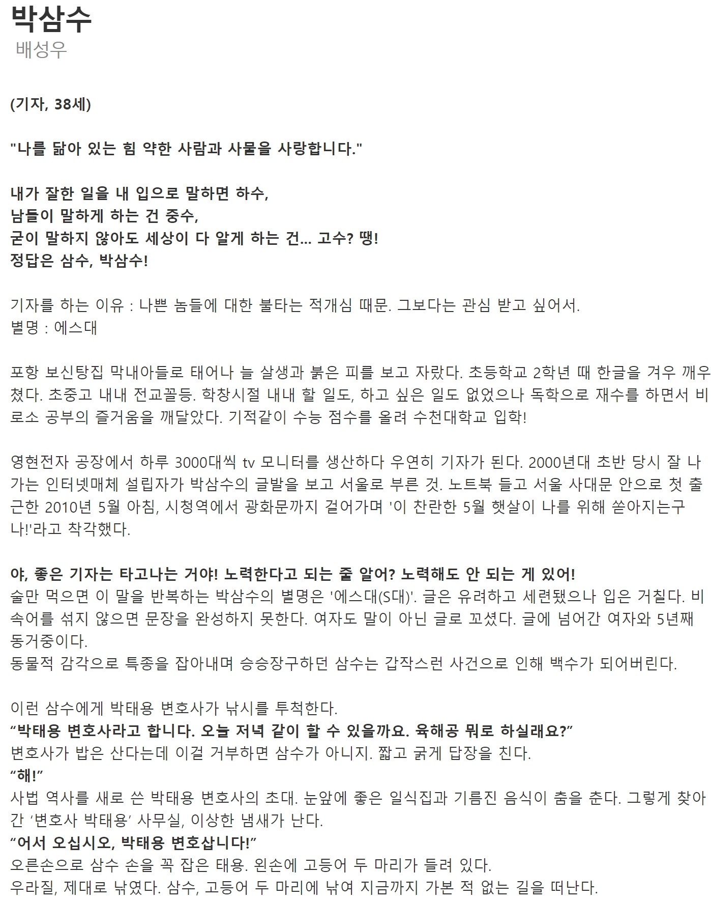 억울한 누명을 쓴 사법 피해자들의 목소리를 세상에 대변하는 두 남자의 뜨거운 이야기인데요. 권상우는 고졸 출신 변호사로 억울한 누명을 쓴 피해자들을 무료 혹은 소액으로 법률상담을 해주는 소신있는 변호사로 출연합니다. 배성우는 뛰어나지 못한 학벌을 가지고 기사 생활을 하는데요. 명문대 출신 검사 혹은 힘있는 사람들에게 놀림을 받으면서도 사법 피해자들에 대해 취재하고 멋진 기사를 써서 도와주는 정의의 사도와 같은 기자로 활약하면서 일어나는 여러 에피소드를 보여주는 드라마입니다.