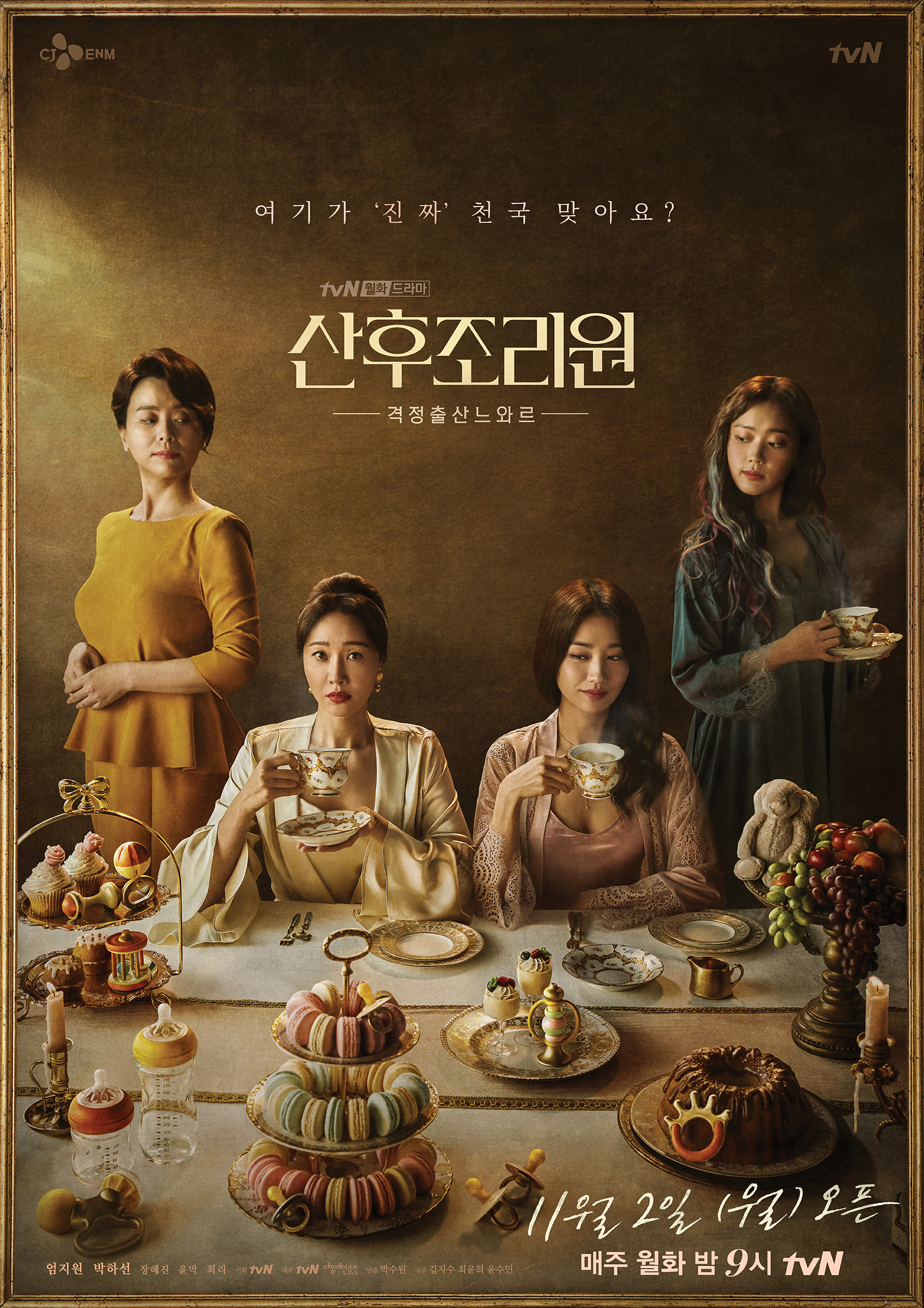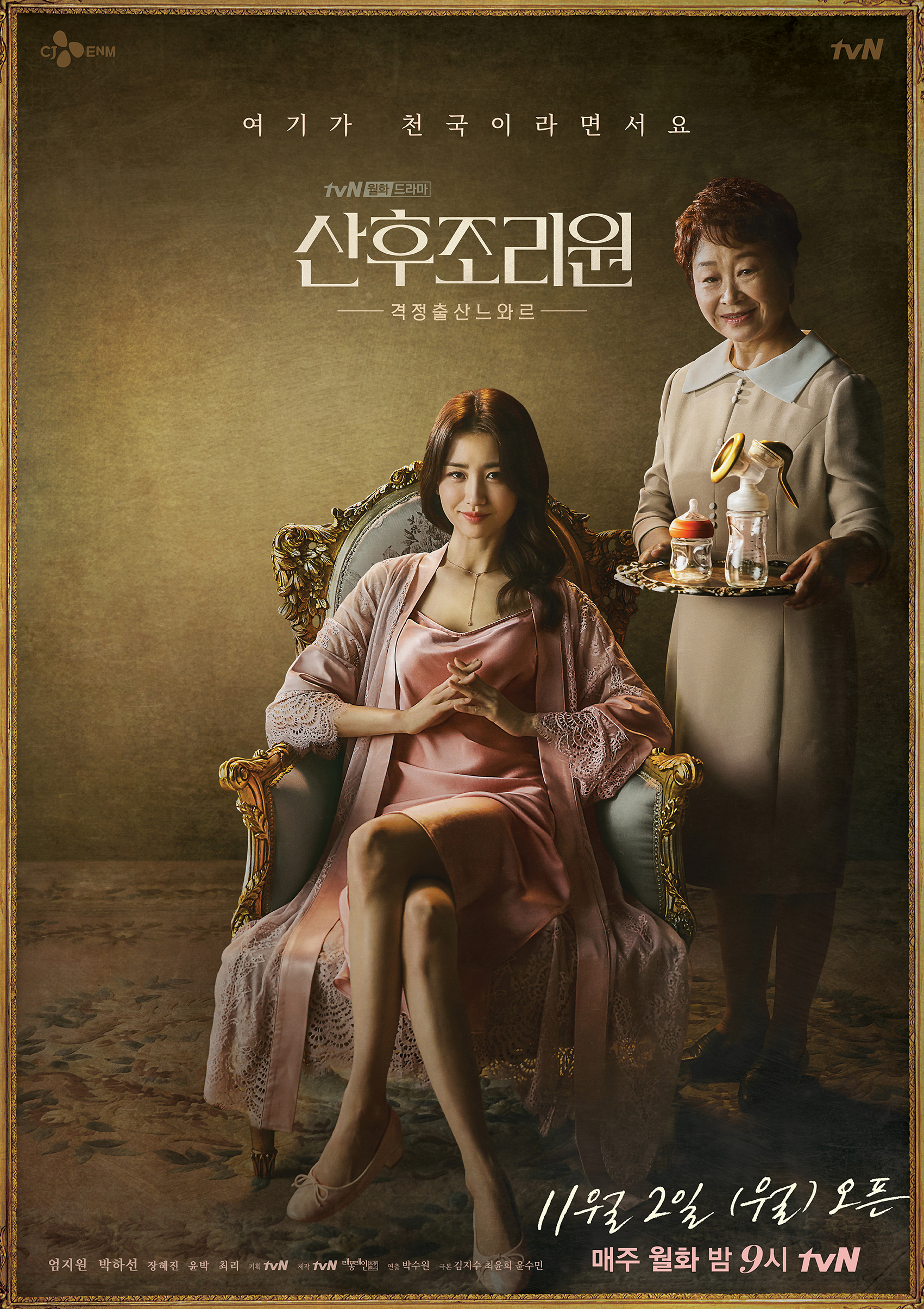 드라마 산후조리원은 tvN에서 방영중인 드라마입니다. 2020년 11월 2일부터 매주 월, 화요일 오후 9시에 방영중인데요. 산후조리원은 총 8부작으로 최근 방영하는 다른 드라마들에 비해 상당히 짧은 분량입니다. 산모들이 산후조리원에 있는 약 2주 동안의 내용을 담다 보니 드라마가 그렇게 길게 제작되지 않은 것으로 보이네요.