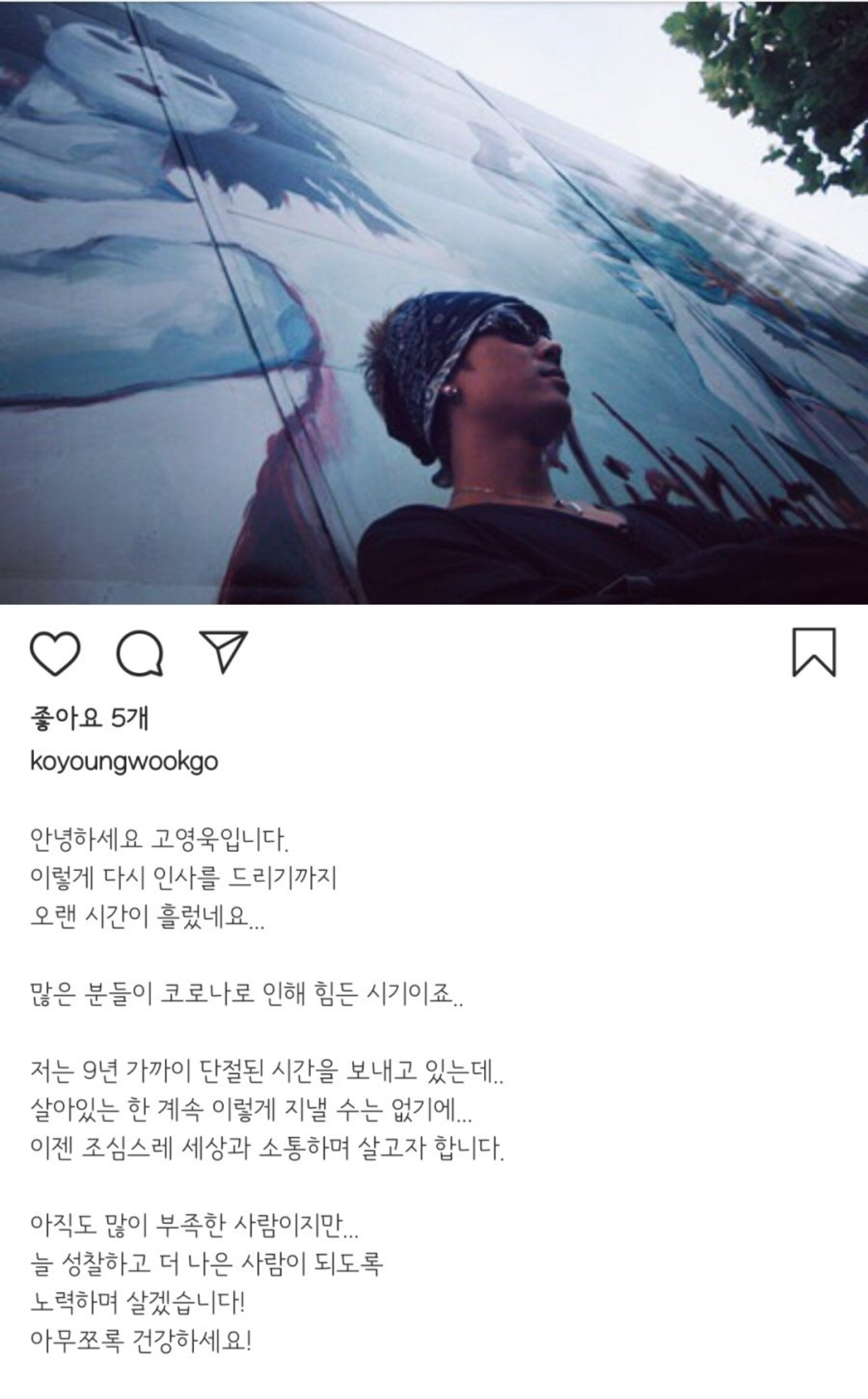 미성년자 성폭행 혐의로 논란이 된 후 9년만에 복귀 의사를 내비쳤다고 볼 수 있습니다. 인스타그램을 생성하면서 기존에 사용하지 않았던 트위터 활동도 같이 재개 했는데요. 인스타그램에 자신의 사진과 함께 글을 올리고 댓글은 차단한 상태로 첫 개시물을 올렸습니다. 고영욱은 인스타그램 개설 이유에 대해서 "저는 9년 가까이 단절된 시간을 보내고 있다. 계속 이렇게 지낼 순 없기에 세상과 소통하며 살고자 한다"라고 말했는데요.